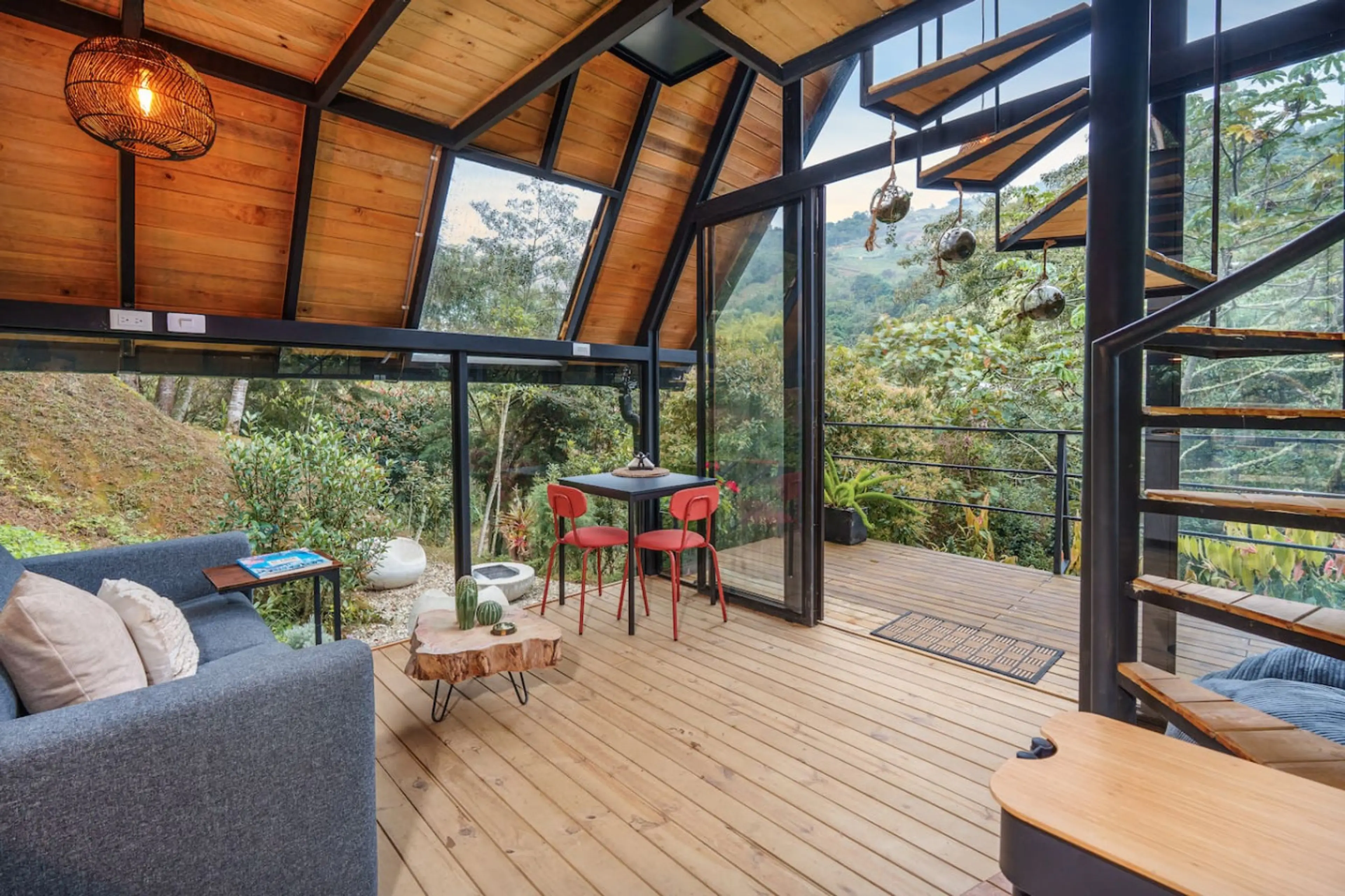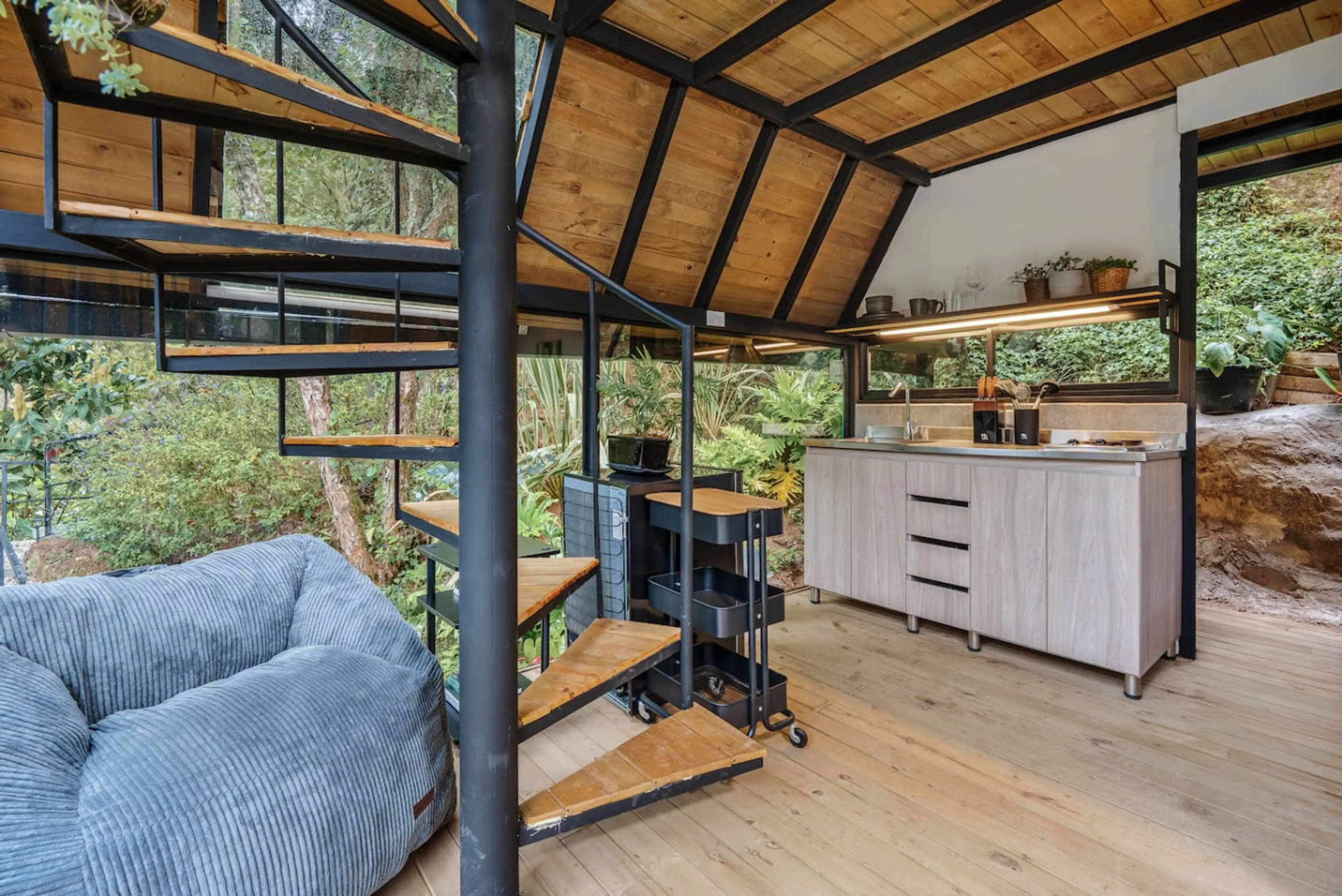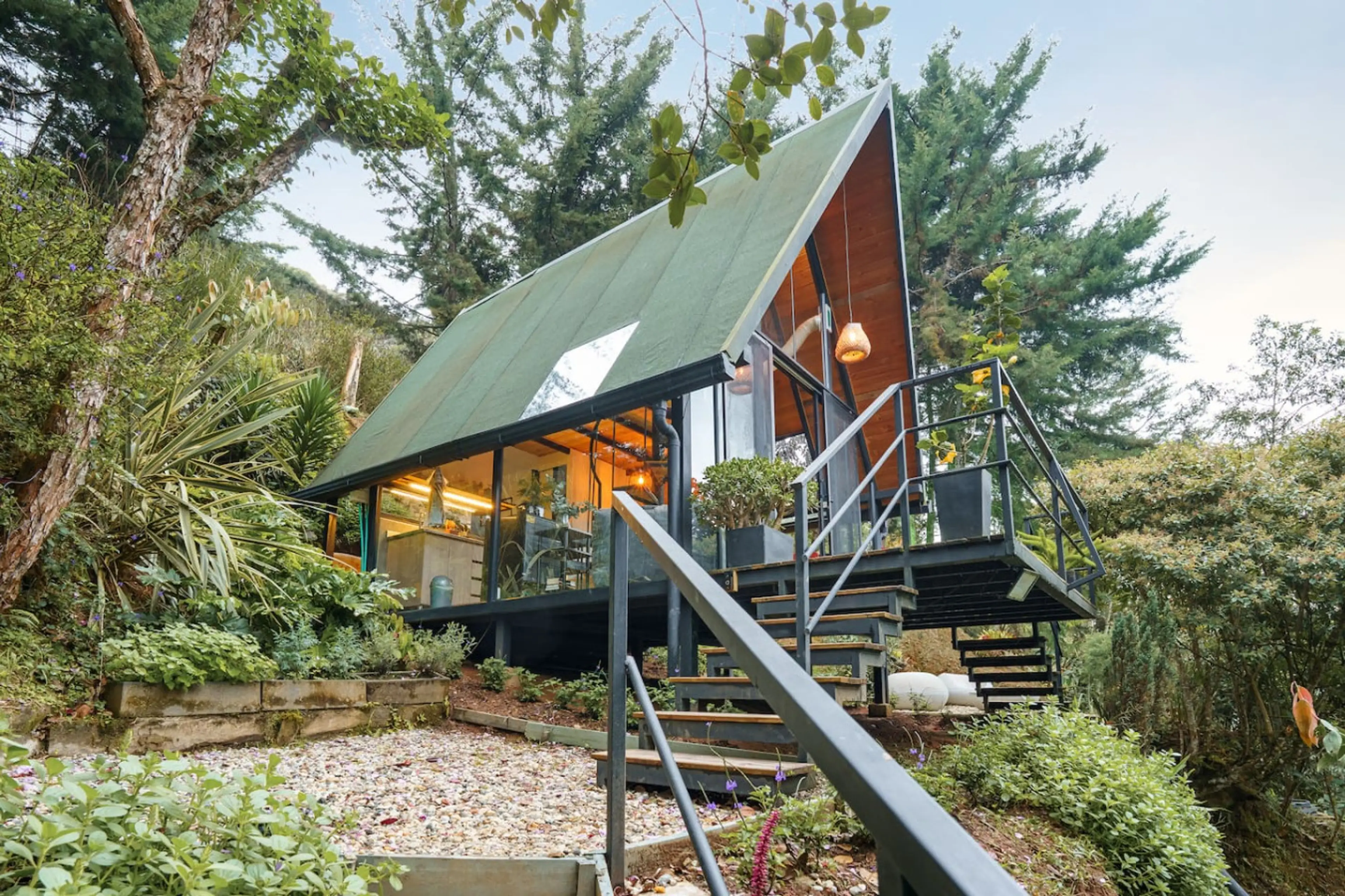 Glamping íntimo rodeado de bosque, acompañado por el sonido constante de una quebrada y el canto de los pájaros. Un A-frame de madera, lleno de luz natural y rodeado de verde, ideal para bajar el ritmo y disfrutar sin prisa. Cuenta con cama queen, baño completo, cocina equipada, sala acogedora, deck...